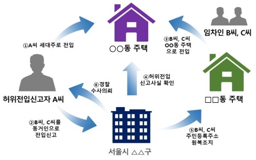 | ▲허위 전입신고 관련 사례 흐름도. 사진=서울시 제공 |