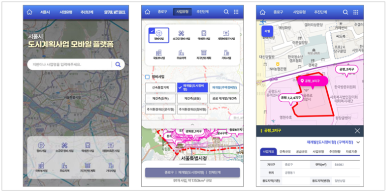 또 플랫폼마다 게재되어 있는 도시계획사업 정보의 유형도 제각각인 데다 이미지 또는 복잡한 자료로 구성돼 사업 위치나 정보 검색 및 주변 환경을 정확하게 분석하는 데도 한계가 있었다.