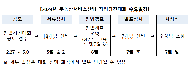 | ▲2023년 부동산서비스산업 창업경진대회 주요일정<자료제공=한국부동산원> |