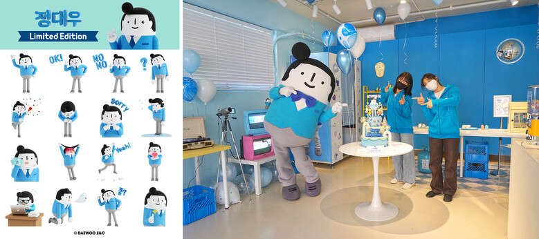 | ▲(좌)정대우 카카오톡 이모티콘 시즌1, (우)정대우 생일카페 팝업스토어<사진제공=대우건설> |