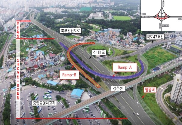 서울 중랑구 신내IC교통광장과 북부간선도로가 확장된다.