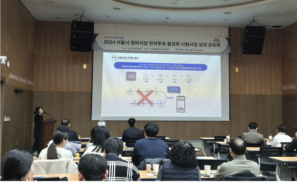 지난해 10월 미성동 건영아파트 재건축조합을 시작으로 올해 1월 서초신동아아파트 재건축조합까지 총 10개 조합에 대한 전자투표 서비스를 제공하고, 지난 14일 서소문청사 1동 대회의실에서 성과를 나누는 자리를 가졌다. 이 자리에는 시범사업 선정 조합 관계자와 자치구 담당자 등 약 50명이 참석해 전자투표 도입 효과와 참여 조합별 소감을 공유하고, 활성화 방안에 대하여 의견을 청취했다.