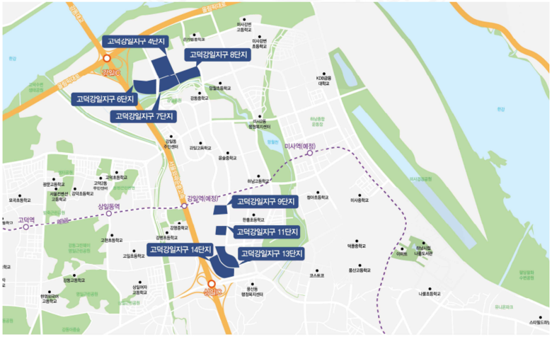 | ▲고덕강일지구 단지 별 위치도. 사진=SH공사 제공 |