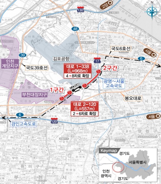 총 연장은 2.55km로 서울시 구간 중 1구간 557m의 도로를 2차로에서 6차로로 확장하며, 2구간 968m의 도로는 4차로에서 8차로로 확장한다. 이와 함께 부천시 구간 1.02km도 6차로로 확장할 계획으로 부천시에서 별도 절차 추진 중이다.