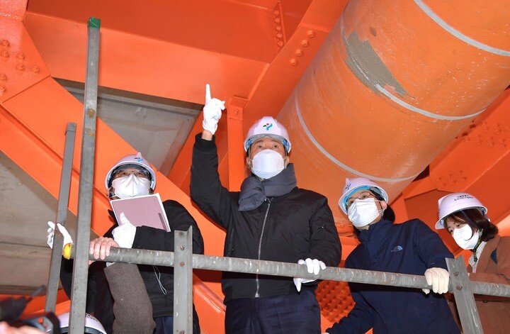 | ▲지난 3월 성산대교 현장 직접 찾은 오세훈 시장(가운데) 모습. 사진=서울시 제공 |