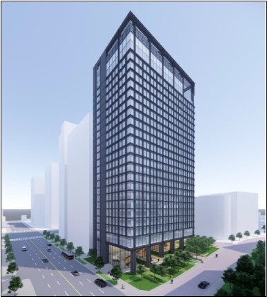건축물은 업무시설 1개동 지상 24층 규모로 조성되며 지상 1층에서 2층은 지형 단차에 따라 가로활성화를 위한 근린생활시설을 배치해 개방형녹지공간과 연계한 건물 내‧외부 휴게공간을 제공한다.