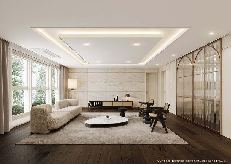 | ▲신세계건설, 빌리브 헤리티지 거실 이미지<자료제공=더피알> |