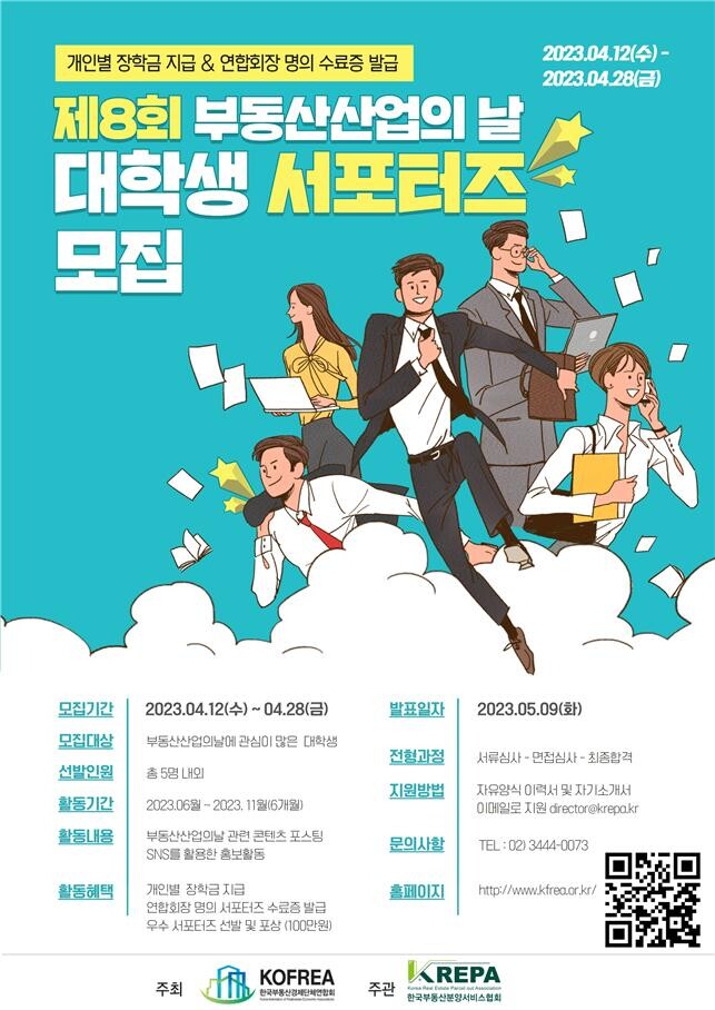 사단법인 한국부동산경제단체연합회가 ‘제8회 부동산산업의 날 대학생 서포터즈’ 모집을 이달 28일까지 진행한다.