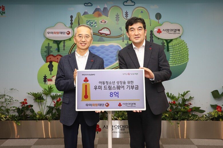 사랑의열매 사회복지공동모금회가 우미희망재단이 성금 8억 원을 기부하며 ‘희망2023나눔캠페인’에 동참했다고 밝혔다.