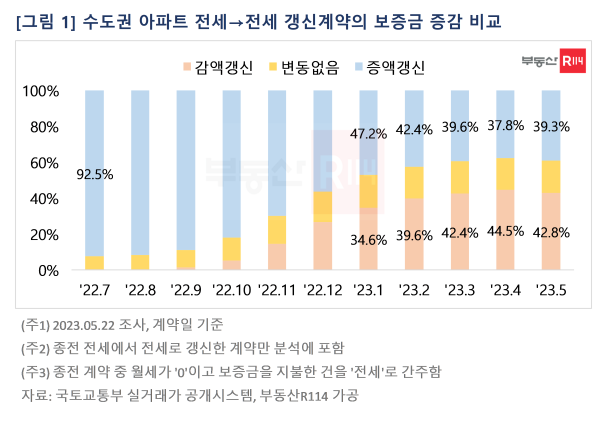 올해 3월 이후 수도권 아파트 월간 전세 갱신 비중 40% 상회