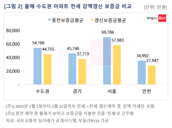 감액갱신 해도 신규계약 대비 보증금 높아, 전셋값 약세 지속 영향