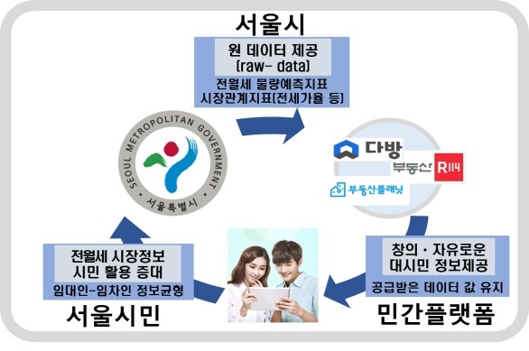 서울시가 이르면 내년 1월부터 민간부동산 거래 플랫폼에서 전·월세 시장정보를 제공한다. 시는 5일 오전 서울시청 서소문2청사에서 다방·부동산R114·부동산플래닛 3사와 이를 위한 공동업무 협약을 체결했다고 밝혔다.