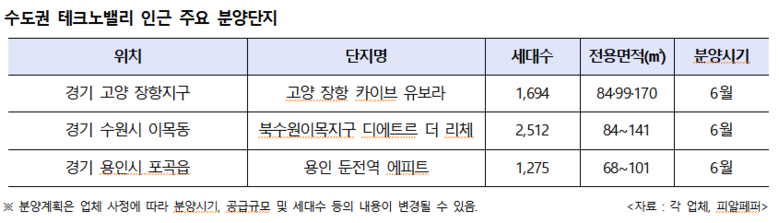 테크노밸리는 IT, 바이오, 반도체 등 첨단 기술을 핵심으로 한 지식 집약적 첨단 산업단지를 일컫는다. 제조업 중심의 공장이 주로 구성된 일반 산업단지와는 달리 연구시설 위주의 기업들이 입주하는 것이 특징이다. 상대적으로 경제 기반이 탄탄한 업무 종사자들을 주요 수요층으로 두는 만큼 배후 단지들은 높은 집값을 형성하는 경우가 대다수다.