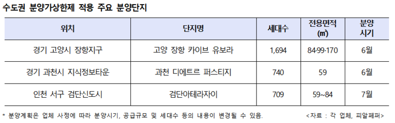 인천 서구 검단신도시에서는 GS건설·금호건설 컨소시엄이 분양가상한제가 적용된 ‘검단아테라자이’를 7월 공급할 계획이다. 인근에 인천지하철 1호선 연장 신설역인 검단호수공원역(가칭) 예정 등 교통 여건 개선이 기대된다. 전용 59~84㎡ 총 709세대 규모다.