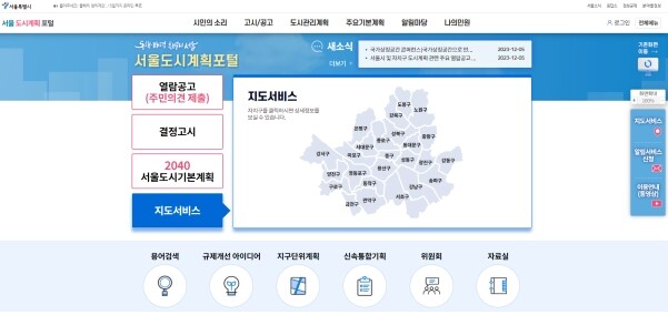 | ▲서울도시계획포털 메인화면 갈무리. 사진=서울시 제공 |