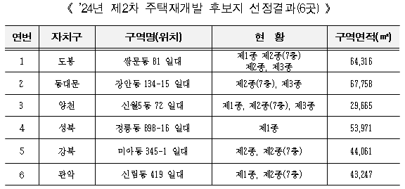 | ▲2024년 제2차 주택재개발 후보지 선정 결과. 표=서울시 제공 |