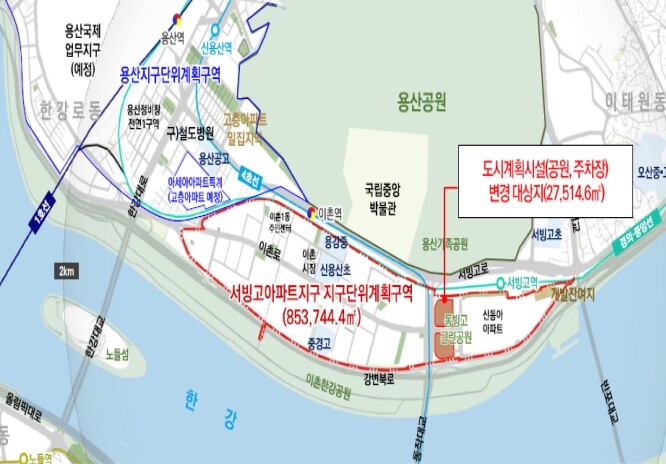 시는 이번 지구단위계획 변경을 통해 주차장을 새롭게 조성할 수 있는 여건을 마련하고 추후 민간 주차장도 조성해 지역 주민과 용산가족공원, 이촌한강공원 등 주변시설을 이용하는 이용객에게 제공될 예정이다.