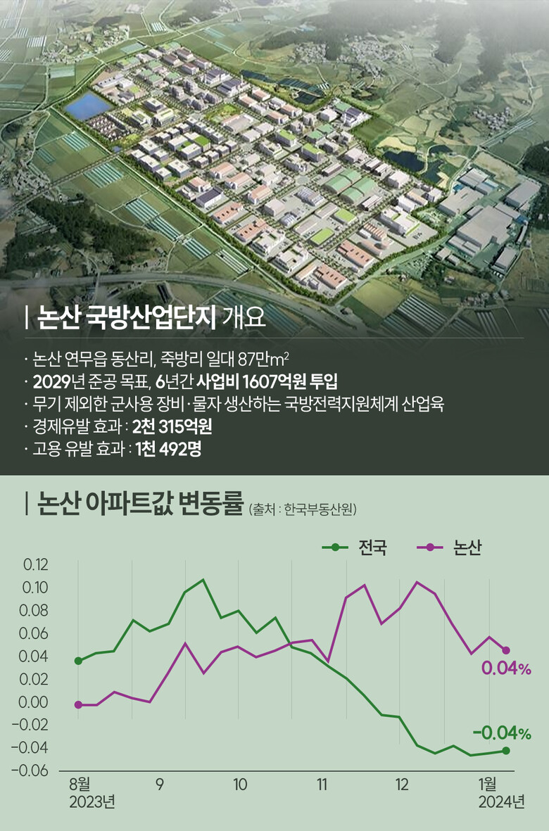 부동산인포 권일 리서치 팀장은 “국가산단은 고용창출을 넘어 경제 발전과 기술혁신, 수출 증가 등에도 방점을 둬 일반산단 보다 파급력이 크다”라며 “논산 내 육군훈련소와 국방대 등 탄탄한 기존의 군 관련 인프라와도 시너지가 가능할 것”이라고 말했다.