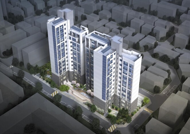 또 협소한 도로 여건을 감안해 동·서·남측 도로에 보도 부속형 전면공지(2m)를 조성해 보행환경을 개선했고, 가로활성화를 위해 북측 도로변에 설치한 주민공동시설 옥상은 단지내 휴게 공간과 연결해 입체적인 외부공간이 될 수 있도록 계획됐다.