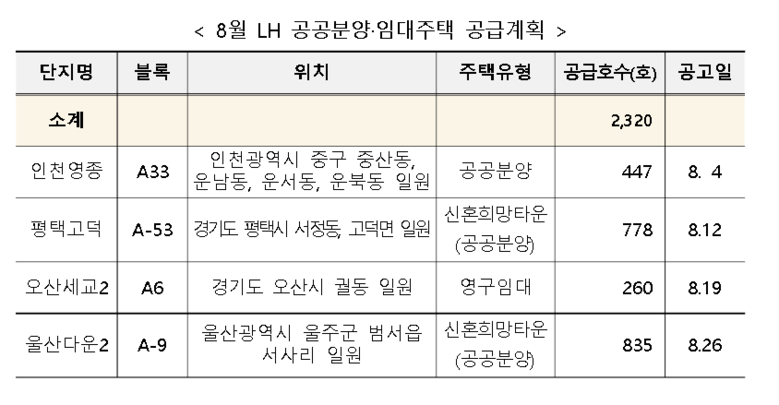 LH 관계자는 "남은 3·4분기 주택 공급에 박차를 가하고 있다"며 "국민들에게 양질의 분양·임대주택을 제공하는데 최선을 다 하겠다"고 전했다.