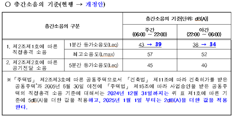 주간·야간 층간소음 기준 4dB씩 낮춰