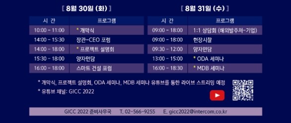 특히 올해는 3년 만에 대면 행사로, 중동, 아시아, 중남미, 아프리카 등에서 15개국의 인사들이 행사장에 직접 모여 발주 정보를 교류할 예정이다. 또 올해 신설된 '장관·CEO 포럼'을 통해 각국의 다양한 경험과 비전을 바탕으로 인프라 협력 방안을 모색할 예정이다.