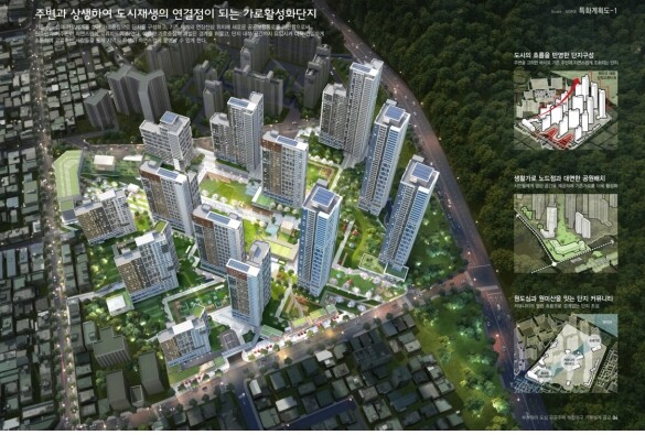 또 단지 외부와 연결된 3가지 커뮤니티 로드(문화, 스포츠, 키즈 로드)를 제안하고, 지역주민들이 자연스럽게 소통하고 교류할 수 있는 소통 공간을 설계해 지역주민과 입주민의 이야기를 만들어가는 열린 마을을 계획했다는 평가를 받았다.