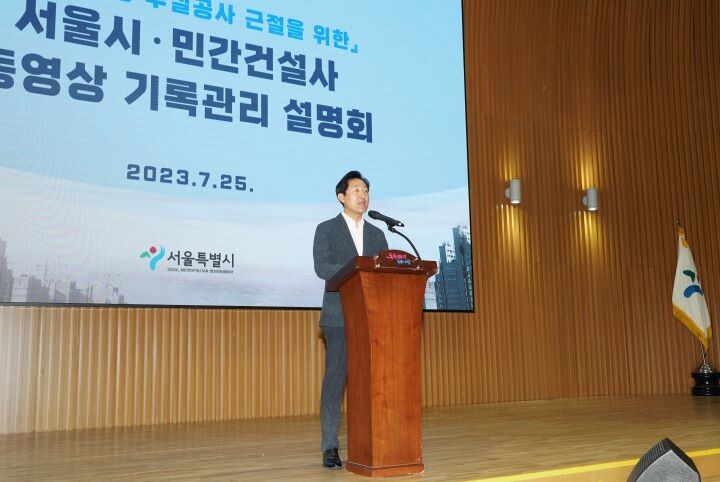 오세훈 서울시장이 25일 오전 시청 다목적홀(8층)에서 열린 '서울시·민간건설사 동영상 기록관리 설명회'에 참석해 부실공사 근절에 앞장섰다.
