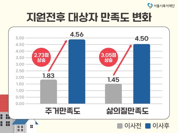 아울러 지난해 지원 가구의 주거만족도는 1.83점에서 4.56점으로, 삶의 질 만족도는 1.45점에서 4.50점으로 모두 올라간 것으로 집계되기도 했다.