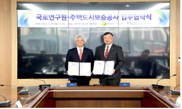 HUG는 국토연구원과 25일 세종시 국토연구원 대회의실에서 이를 위한 업무협약을 체결했다고 3일 밝혔다.
