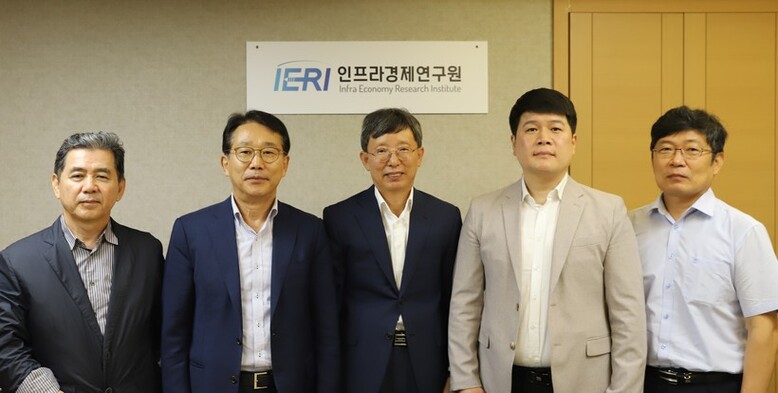 | ▲지난 19일 인프라경제연구원에 오재학 KOTI원장이 내방해 정책 간담회가 진행됐다.(왼쪽부터 김연명 한서대 교수, 이창운 원장, 오재학 원장, 김종열 비엠아이앤씨 대표, 김재문 한국교통대학교 교통대학원장.<사진제공=한국교통연구원> |