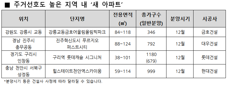 이러한 가운데 주거선호도가 높은 지역에서 새 아파트 공급이 이어져 눈길을 끌고 있다.