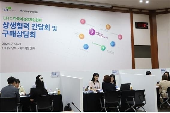 | ▲한국토지주택공사와 한국여성경제인협회가 진행한 '상생협력 간담회 및 구매상담회' 모습. 사진=LH 제공 |