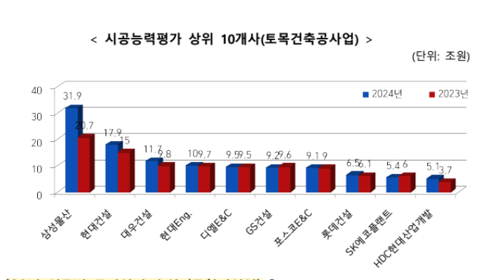 | ▲2024년 건설사 시공능력평가 상위 10개사. 그래프=국토부 제공 |