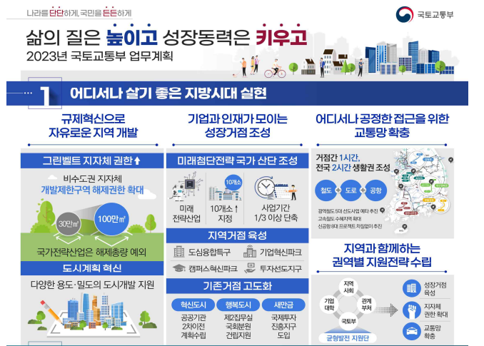국토교통부는 3일 청와대 영빈관에서 이런 내용의 2023년 업무계획을 발표했다.