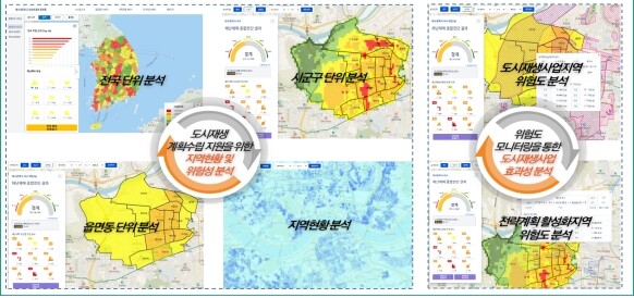 특히, 진단시스템은 기존 집계 단위보다 작은 격자 단위(100m)로 구축돼 보다 정확한 데이터를 제공할 수 있고, 전 국토의 위험도에 대한 상시DB를 활용할 수 있어 분석 시간과 비용을 절감할 수 있다는 게 LH 측의 설명이다.