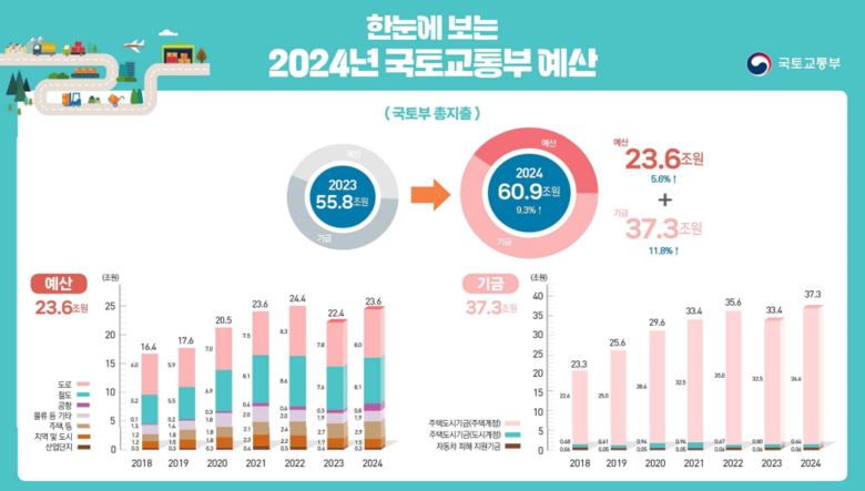 정부는 오는 26일 국무회의에 2024년 예산의 공고안 및 배정계획을 상정ㆍ의결할 계획이며, 국토부는 회계연도 개시 직후부터 집행에 착수할 수 있도록 사전 준비를 철저히 해나갈 계획이다.