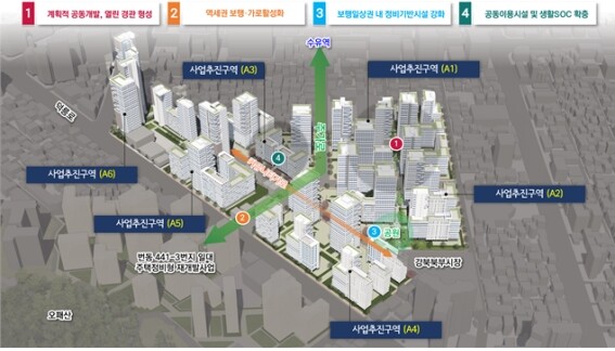 번동 411 일대에서는 모아주택 6개소가 추진되며 임대주택 443세대를 포함해 총 2249세대가 공급될 예정이다.
