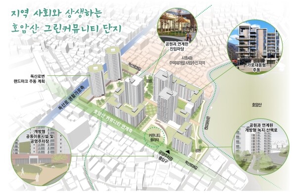 이와 함께 지형의 단차를 이용해 공영주차장 150면을 확보, 도로 폭도 6m에서 8m로 넓히며, 기존 공원을 확장해 호암산과 녹지축을 연결하고 개방형 녹지공간을 조성할 예정이다. 단지 내 저층부에는 보훈회관, 공동이용시설 등 개방형 커뮤니티 시설이 들어선다.