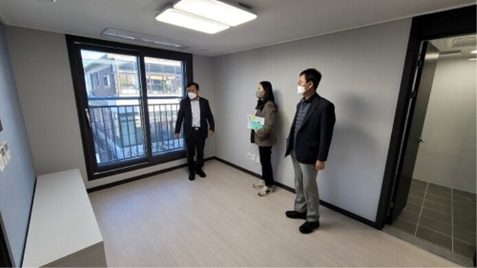 | ▲하승호 LH 국민주거복지본부장(왼쪽 첫 번째)이 자립지원주택에 방문해 점검하는 모습. 사진=LH 제공 |