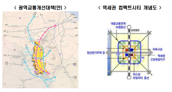 도시철도 역 인근에는 개발밀도를 높이는 압축도시(compact city)를 적용해 역 접근성에 따라 개발밀도를 부여하고, 대중교통을 중심으로 주거지와 업무·문화·지원시설용지 등을 배치해 주거 안정과 더불어 삶의 질 개선에 초점을 맞추기로 했다.