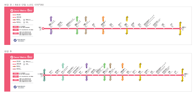 | ▲별내선 변경 전(위)과 변경 후 노선도 (이미지=경기도 제공) |