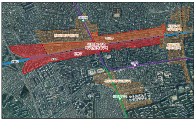 해당 구역은 신월IC에서 홍익병원 앞 사거리 인근까지 이어지는 국회대로 주변지역으로, 이번 계획은 국회대로가 지하하와 상부 공업화 사업을 진행함에 따라 선제적인 관리차원에서 마련됐다.