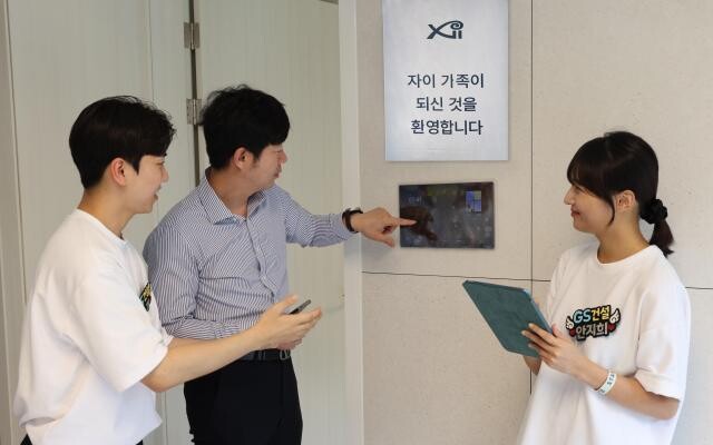 | ▲자이(Xi) 아파트 입주자 사전 방문 행사에 참석한 GS건설 신입사원들이 고객에게 자이앱 사용법을 안내하고 있다. / 사진=GS건설 |