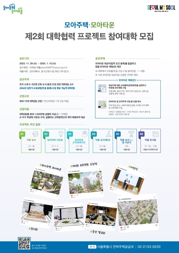 서울시는 내년도 '대학협력 모아주택 모아타운 프로젝트'에 참여할 전국 소재 건축·도시·환경·조경 관련 대학(원)을 오는 29일부터 내년 1월 10일까지 모집한다고 28일 밝혔다.