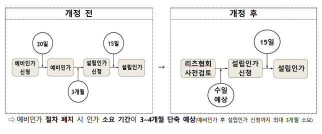 그동안 AMC 설립 시 예비인가와 설립인가 2단계로 나눠 심시해왔으나 각 단계에서 사실상 동일한 요건을 심사하는 등 비효율이 발생한다는 지적이 있어왔다. 이에 정부는 국토부의 예비인가 절차를 폐지하되, 민간단체인 리츠협회 등의 사전검토로 예비인가를 대체하기로 했다.