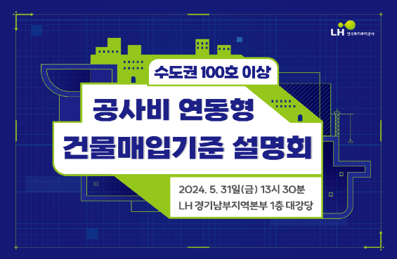 한국토지주택공사(LH)는 오는 31일 경기 성남시 소재 LH 경기남부지역본부 1층 대강당에서 '수도권 100호 이상 신축 매입임대 공사비 연동형 건물 매입기준 설명회'를 연다고 28일 밝혔다.