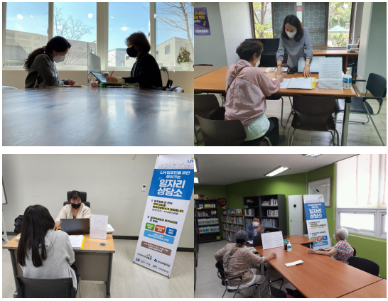 LH 찾아가는 일자리상담 및 취업·복지 연계서비스 사업은 전문 상담사들이 LH 임대주택 단지에 직접 방문해 일자리를 필요로 하는 입주민을 대상으로 취업 상담과 컨설팅을 해주는 사업이다. 이와 함께 직업훈련 연계서비스, 복지서비스 지원 등을 종합적으로 제공하며 개인별 맞춤 컨설팅을 해주는 것이 특징이다.