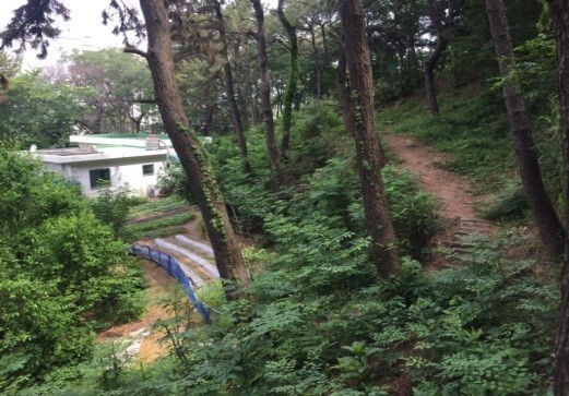| ▲덕천공원 문화재(성곽)위의 불법 건축물<자료제공=더피알> |