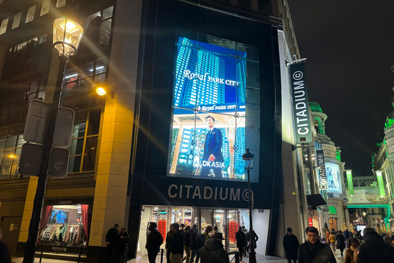 | ▲DK아시아가 프랑스 파리 시타디움 꼬마르탱에서 진행한 로열파크씨티 글로벌 브랜드 광고<사진제공=DK아시아> |